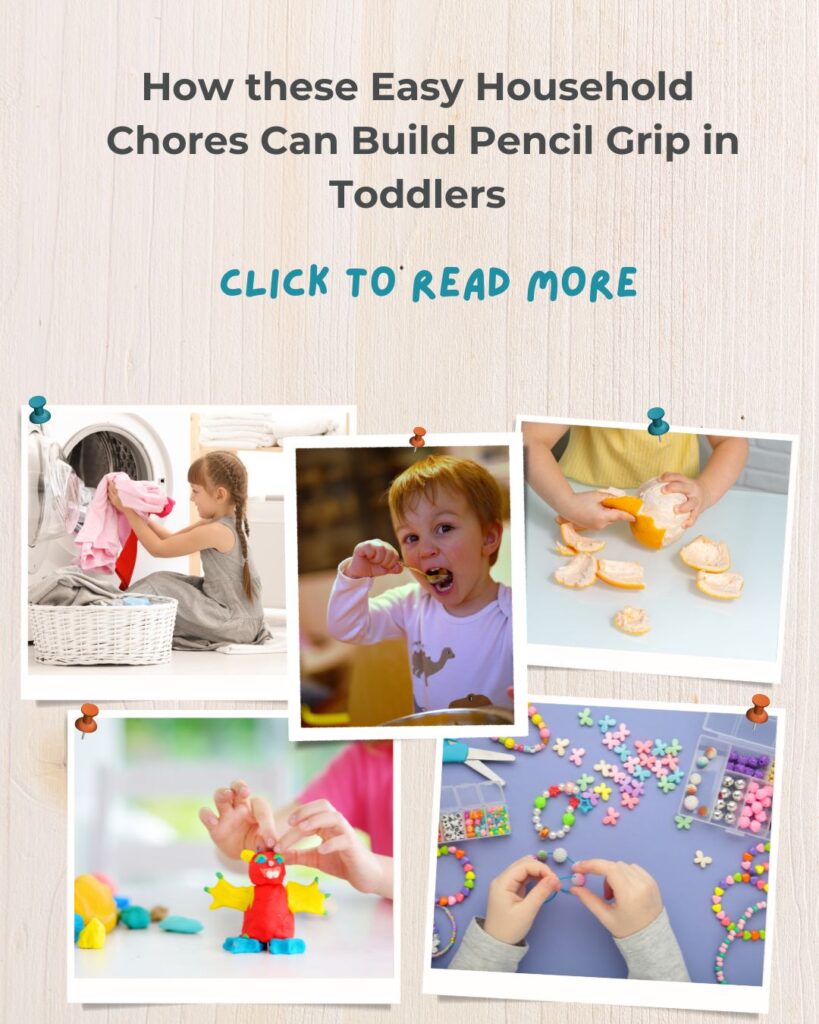 Before toddlers can trace letters or write on blank paper for the first time, they need strong hand muscles. These everyday chores help: